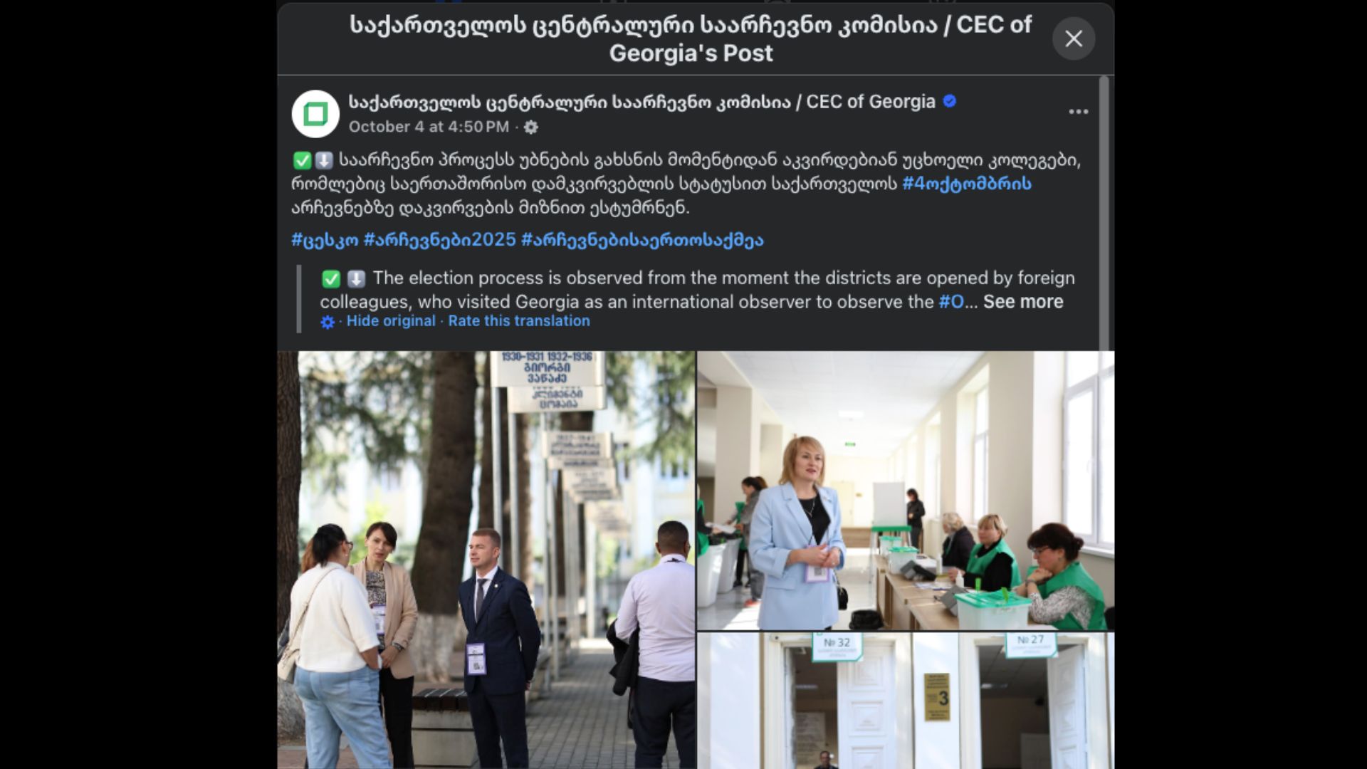 Gruzijska Centralna izborna komisija o međunarodnim posmatračima na izborima. Foto: Facebook