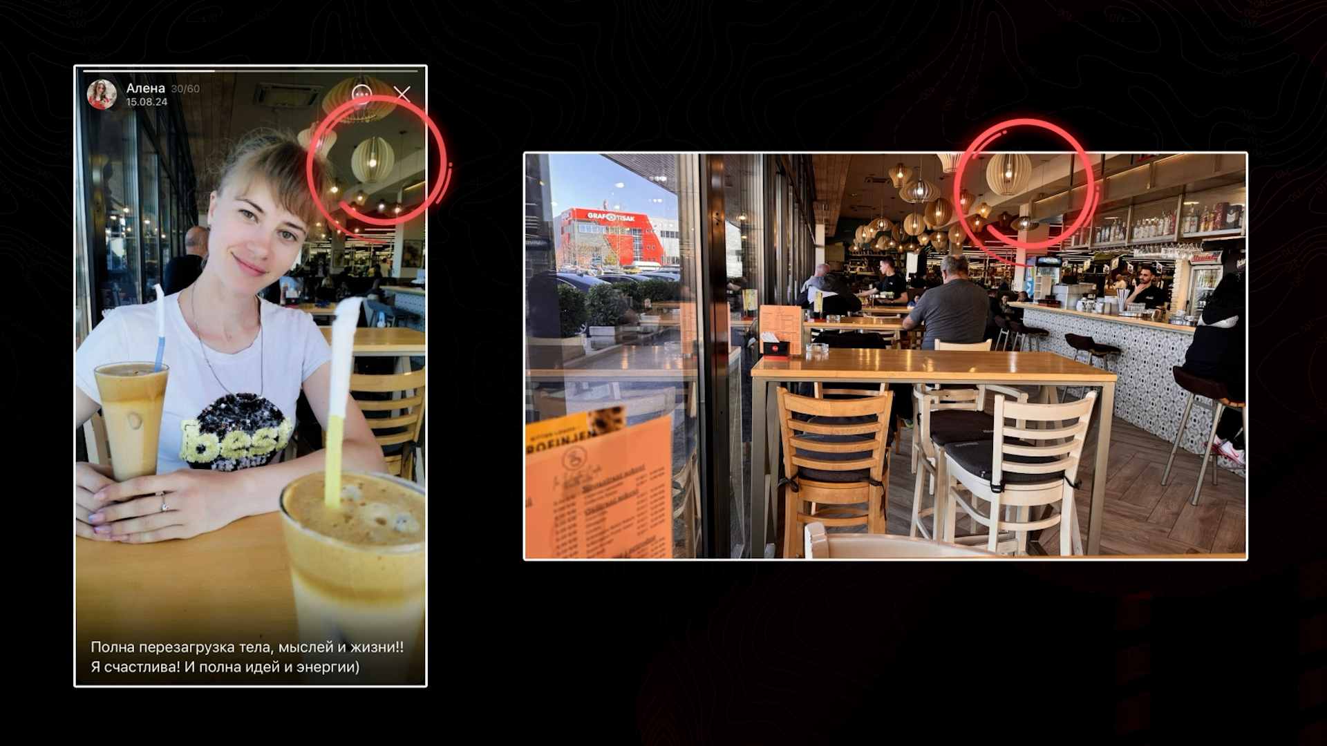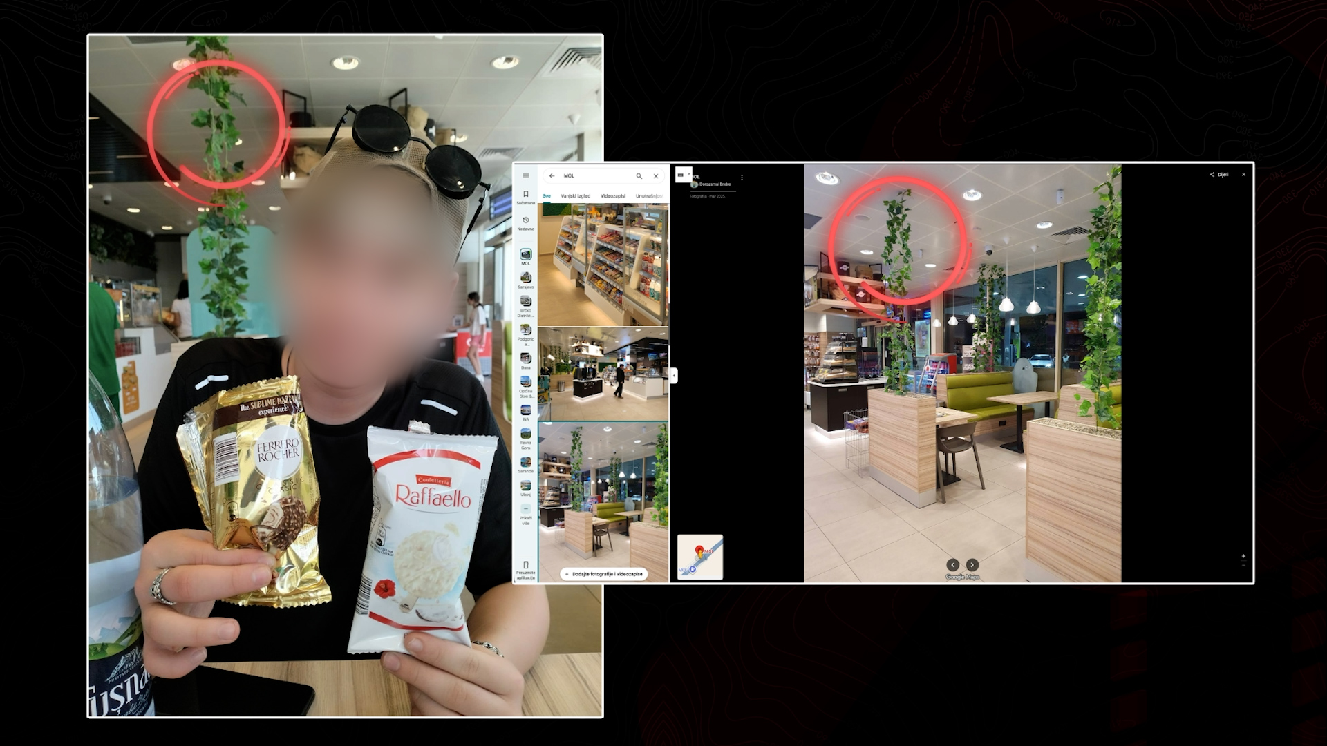 Aliona Gotco u Banjoj Luci 2024. godine (lijevo) i isti lokal 2026. godine. Foto: Telegram/Detektor