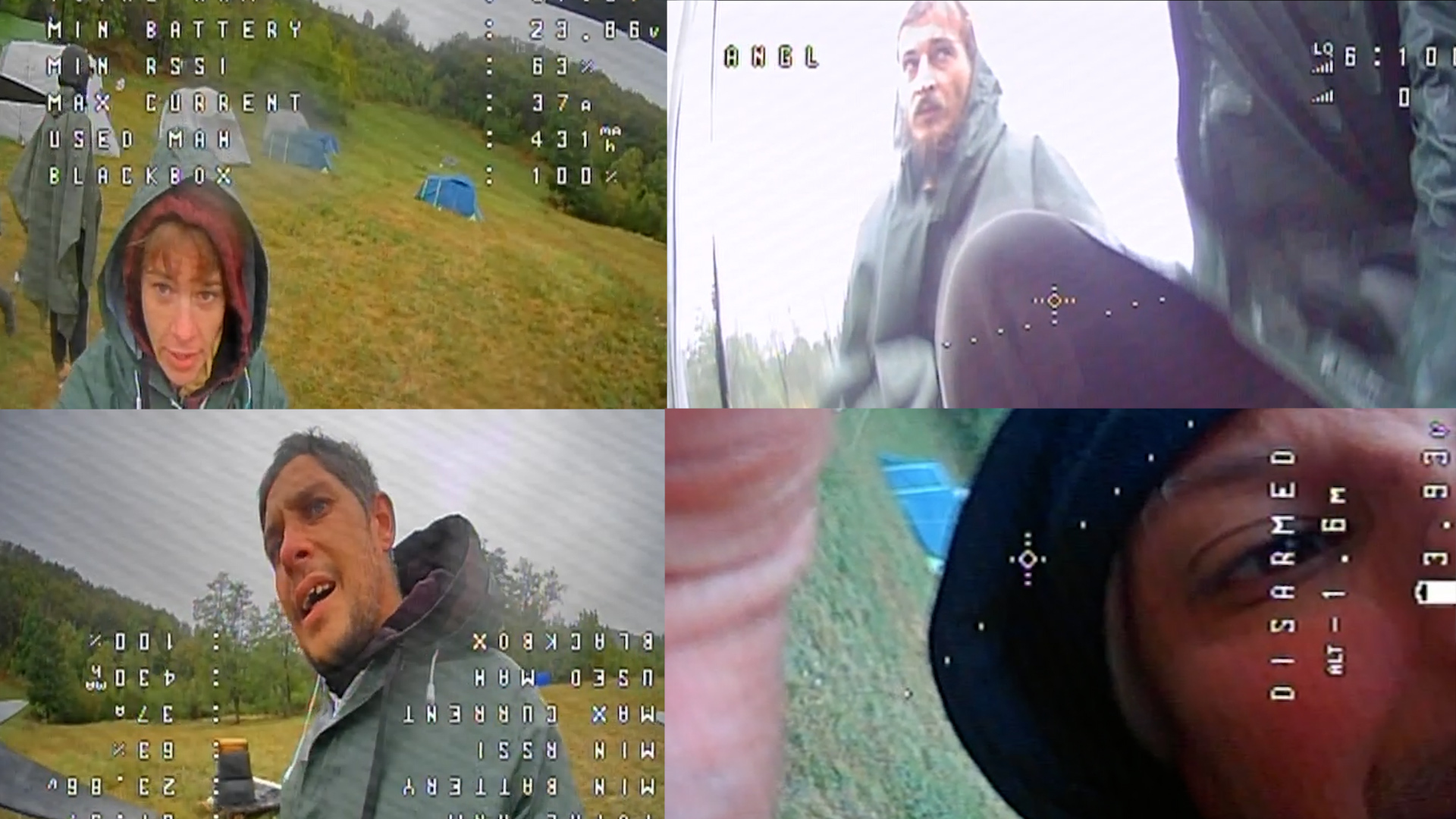Isječci iz videa kamere drona: Aliona Gotco (gore lijevo), Vladimir Harcevnicov (dole lijevo) i nepoznati muškarci (gore i dole desno). Foto: Screenshot
